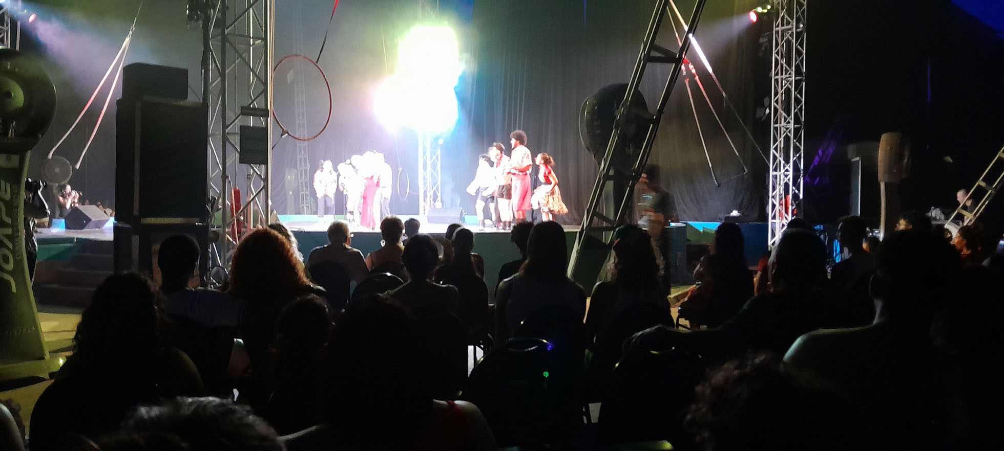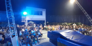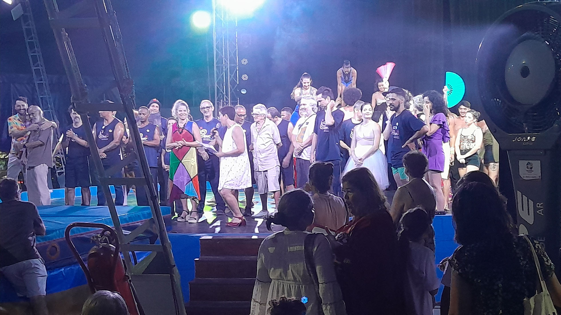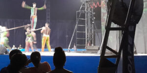À noite, foram realizados dois belos espetáculos: o Circo Science – Do Mangue ao Picadeiro, da Escola Pernambucana de Circo, e o RetomAr-te, com alunas e alunos da Escola, que retratou, de forma figurada, a decida da lona anterior da escola e seu reerguimento neste ano, com muita emoção para todos os presentes.